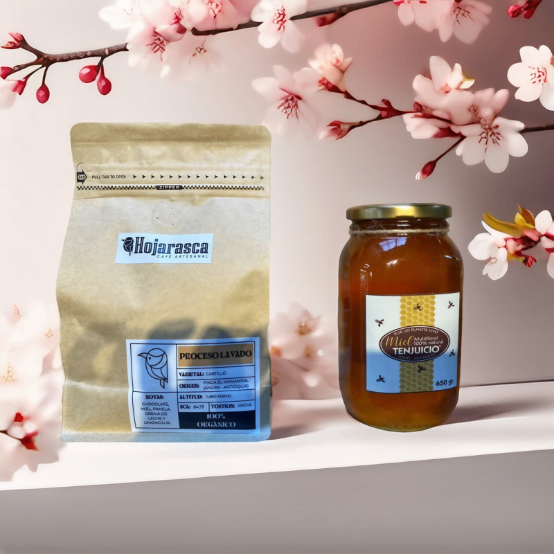 Kit frasco de miel Tenjuicio 650 gramos y Café Hojarasca de 340 gramos